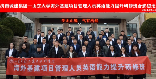 12月24日,集團(tuán)2024年海外業(yè)務(wù)骨干英語能力提升培訓(xùn)班在山東大學(xué)千佛山校區(qū)開班。山東大學(xué)土建與水利學(xué)院正處級組織員胡巖、副院長王少偉,集團(tuán)黨委委員、副總經(jīng)理史紅軍參加活動。集團(tuán)市場經(jīng)銷管理相關(guān)崗位人員參加培訓(xùn)。