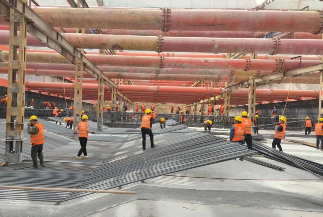近日,集團(tuán)黃河大道二期二標(biāo)項目現(xiàn)場,呈現(xiàn)出一片熱火朝天的施工景象。機(jī)械轟鳴聲震耳欲聾,1臺塔吊鐵臂擎天,40余臺工程車輛穿梭如織,380多名建設(shè)者全力奮戰(zhàn),用汗水和辛勞詮釋著城建鐵軍的責(zé)任與擔(dān)當(dāng)。