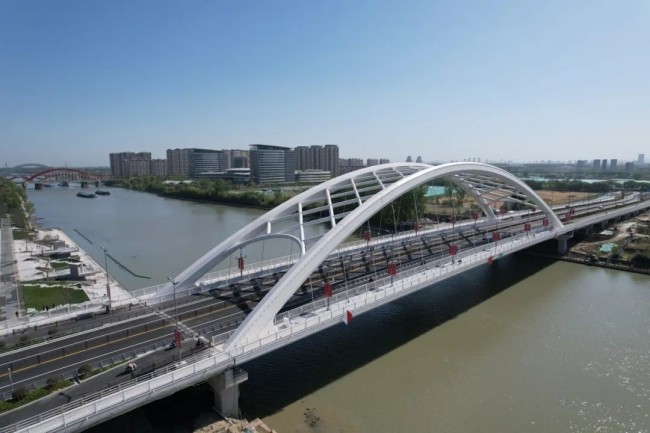 揚(yáng)州二里橋路跨京杭運(yùn)河工程是連接老城區(qū)與新城市中心商務(wù)區(qū)的重要分流通道。項(xiàng)目部以黨建聚力、科技賦能,組織青年突擊隊(duì)保障總重量超5000噸的主橋鋼結(jié)構(gòu)頂推安全。面對臨時墩單點(diǎn)集中荷載最大1138噸,突擊隊(duì)員嚴(yán)控支架穩(wěn)定,每日觀測沉降,確保頂推順利完成。同時,克服梅雨及高溫影響,20余天完成鋼結(jié)構(gòu)系梁吊裝,應(yīng)用“免鑿毛止?jié){帶”“自動化噴淋臺車”“Cooker保溫車”等工藝優(yōu)化資源,提升質(zhì)量。工程通車后,高效承擔(dān)路網(wǎng)銜接轉(zhuǎn)換功能,顯著分流老城與新城核心區(qū)交通壓力,為帶動運(yùn)河兩岸的基礎(chǔ)建設(shè)及經(jīng)濟(jì)發(fā)展提供強(qiáng)力交通支撐。